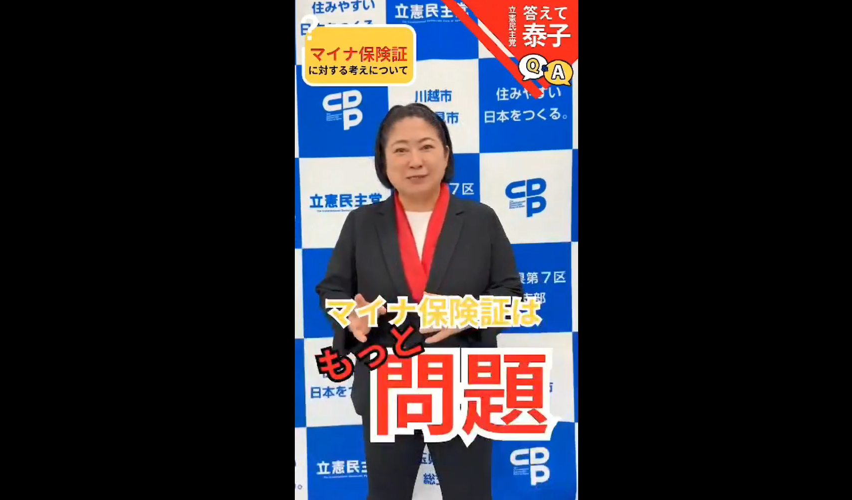「マイナ保険証」の問題について話すこみやま泰子ショート動画。
