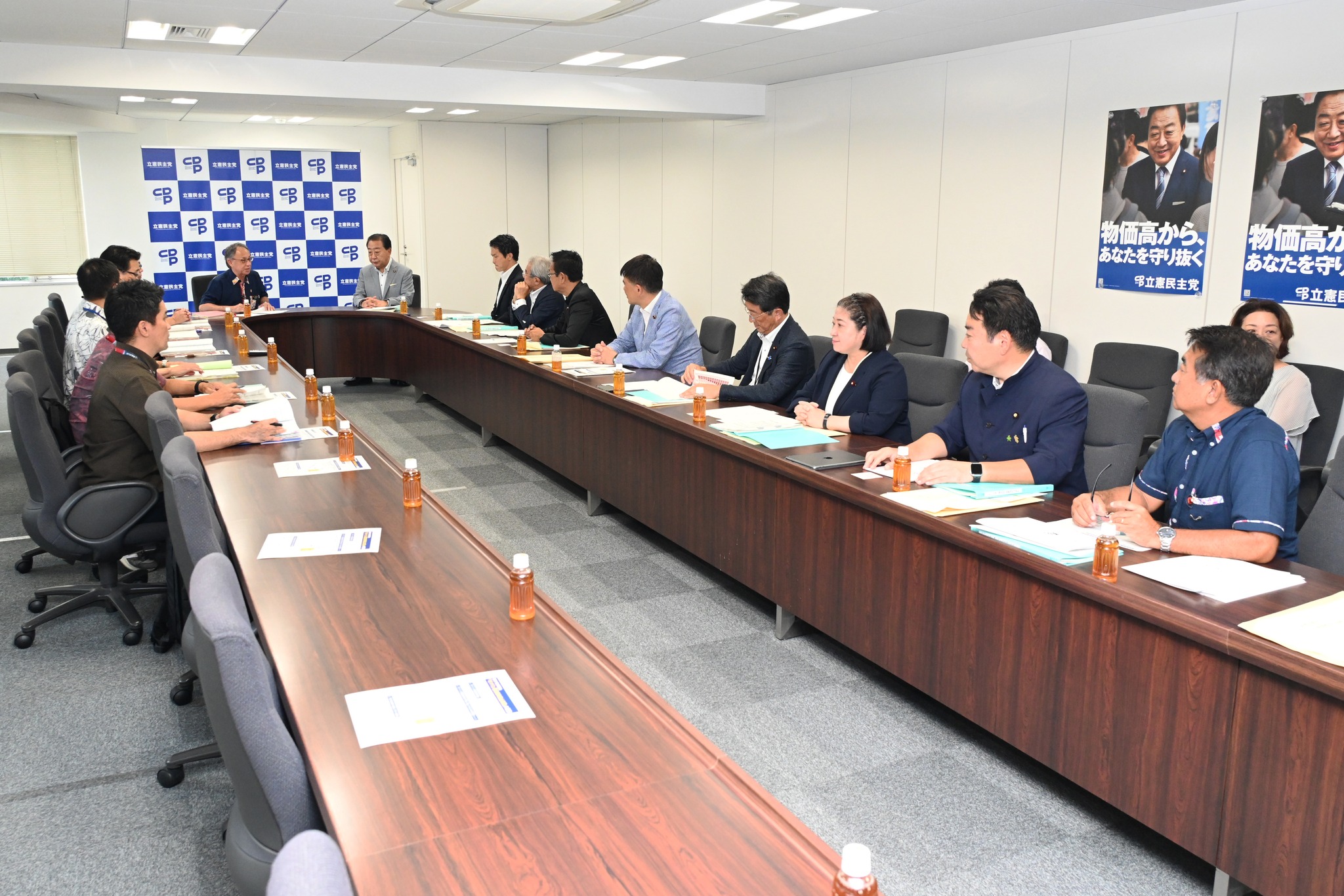 5日、立憲民主党内で沖縄に関わる諸課題について議論している「沖縄協議会」にて、沖縄県の玉城デニー知事より「沖縄振興に関する内閣府一括計上予算」に関する要請、沖縄「県土の均衡ある持続可能な発展を支える交通基盤の構築への支援」に関する要請、「次代を担うこどもたちの健やかな成長を支える学校給食費の支援」に関する要請の文章を受け取り、説明を伺うとともに、意見交換しました。