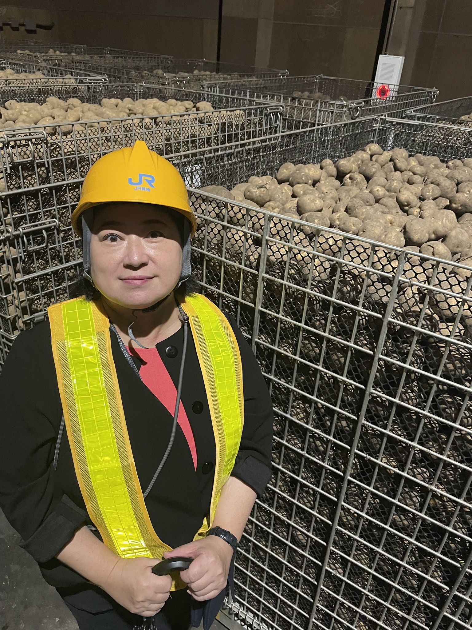 1日、JR貨物、熊谷貨物ターミナル駅に隣接する、JA士幌町さんの倉庫視察。倉庫全体が低温に保たれ、膨大な量のジャガイモが保管されています。
