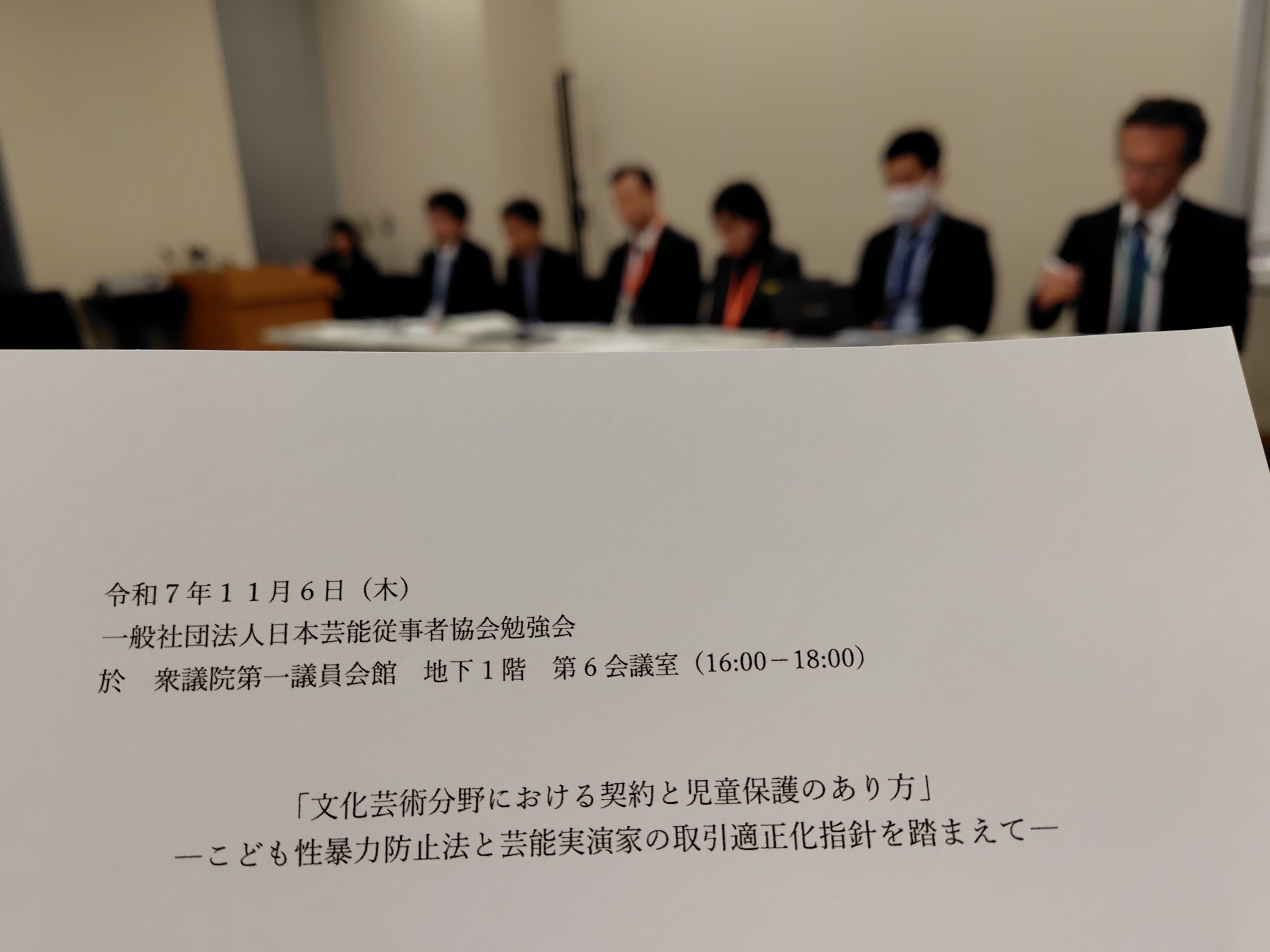 6日、日本芸能従事者協会による「文化芸術分野における契約と児童保護のあり方についての勉強会」-こども性暴力防止法と芸能実演家の取引適正化指針を踏まえてーが、開催されました。会場には、芸能プロダクションの方もお越しになり、現状について関係省庁出席者と意見交換も行われました。