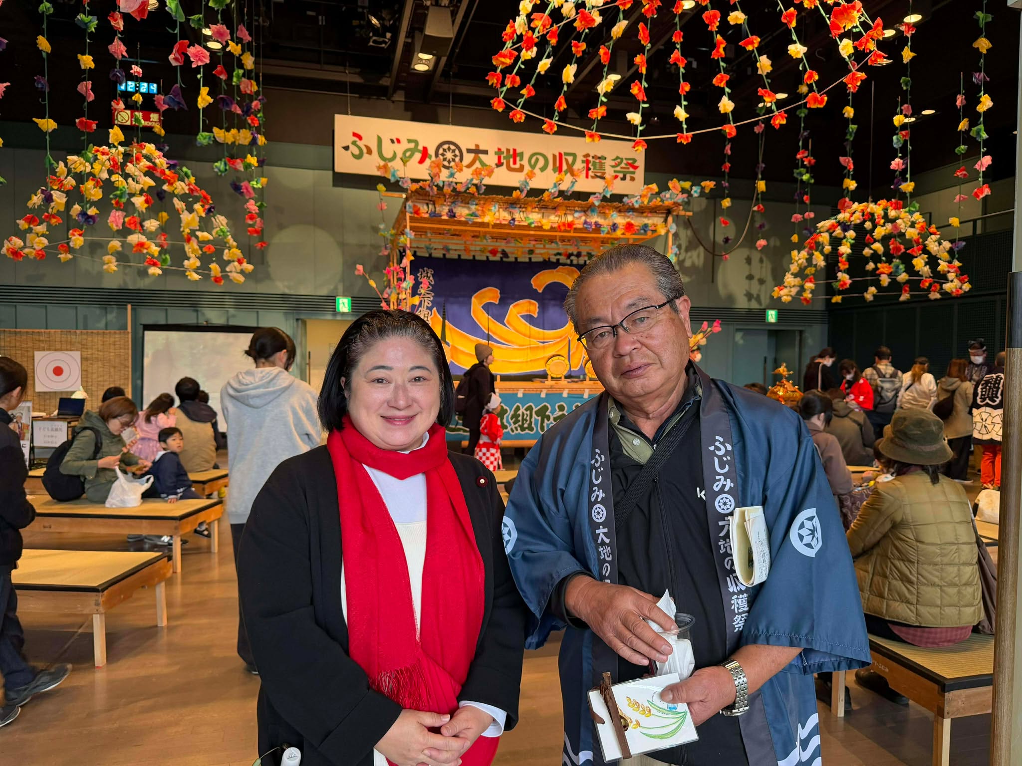 23日、ふじみ大地の収穫祭は、富士見市内の農家さん、商工業者さん等による採れたて野菜はじめとした品々が提供、富士見市の祭りなど、伝統も継承されるイベントが「キラリ☆ふじみ」周辺を会場として開催されました。 南畑お月見一座は、年一回の講演に向けて台本作り、舞台稽古も進んでいるとか、また地元のお米を使った地ビールなど、まさに富士見市の醍醐味が味わえる収穫祭でした。
