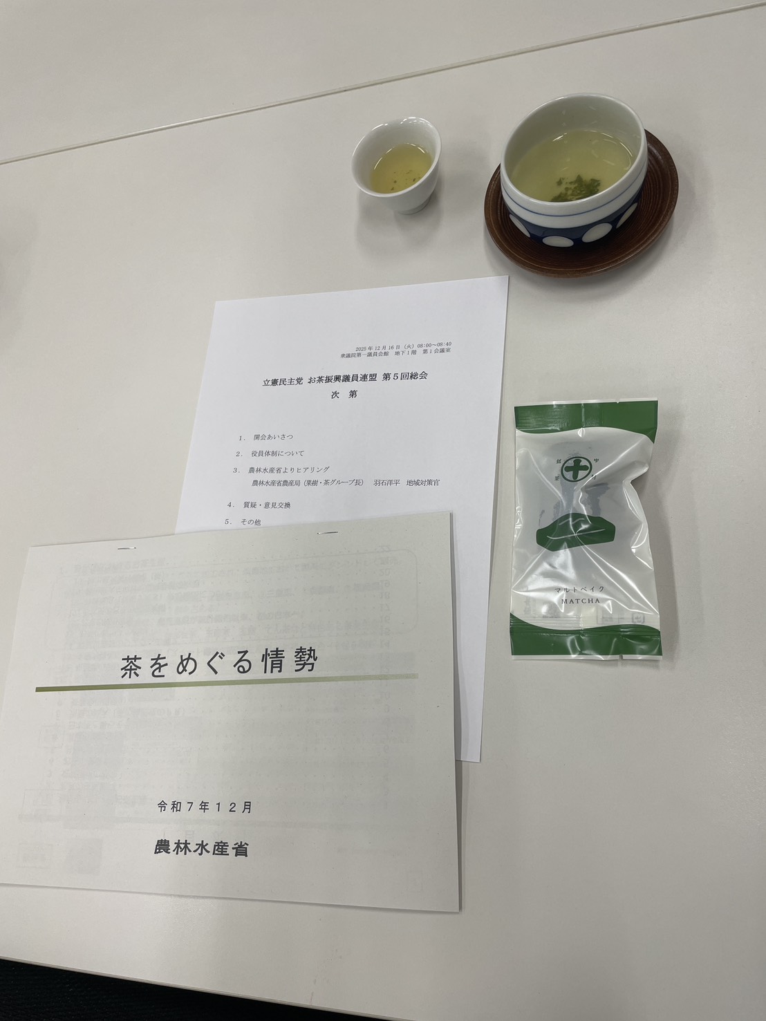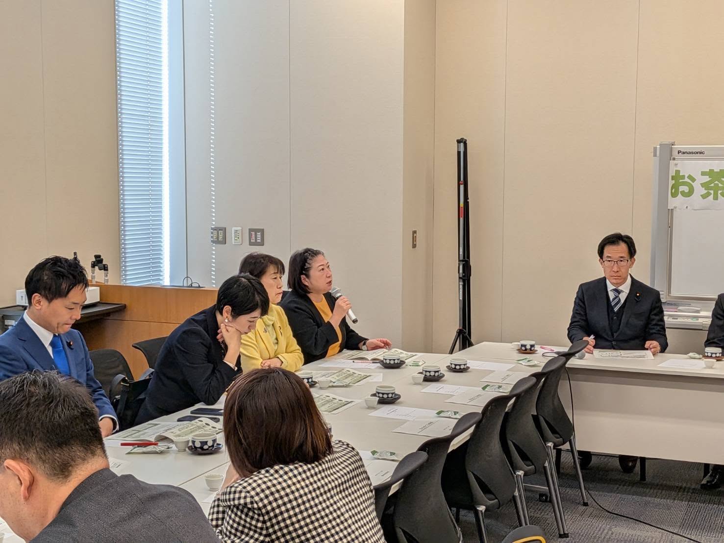 16日、立憲民主党お茶振興議員連盟(山井和則会長、大串博志幹事長)の総会に出席。農林水産省より茶業に関しての現状など説明を聞くとともに意見交換しています。