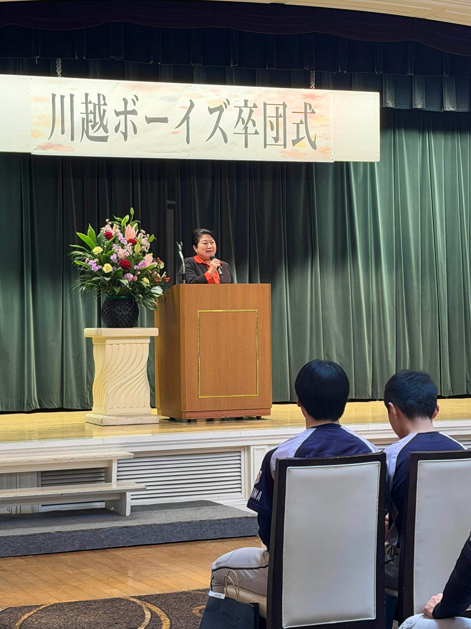 21日、中学生の硬式野球「ボーイズリーグ」に所属する川越ボーイズさんの卒団式に出席し、祝辞申し上げました。