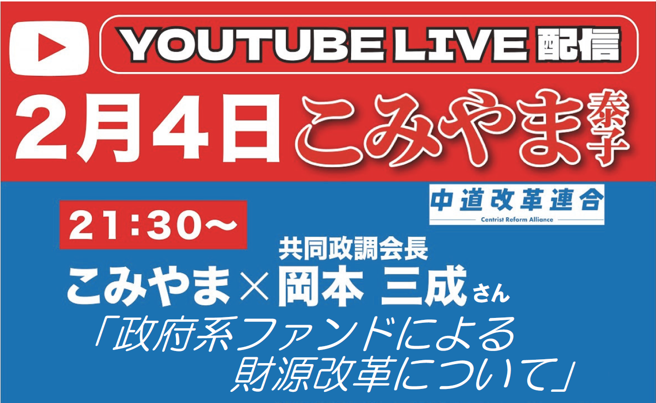 中道改革連合 岡本三成共同政調会長との対談(4日、夜実施)をYouTubeライブ生配信しました。その際の動画をYouTube上からご覧いただけます。