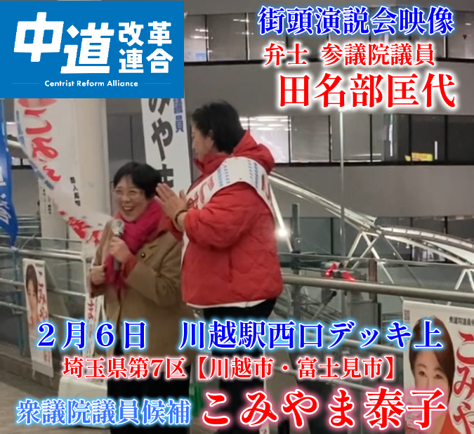 6日、川越駅西口デッキ上での街頭演説会。田名部匡代参議院議員による応援演説映像、その1(オープニング、突然の選挙、何を判断する選挙なのか、など)をYouTubeにUpしました。