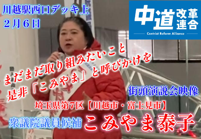 中道改革連合公認 埼玉7区(川越市・富士見市)衆議院議員候補 こみやま泰子 街頭演説映像(その5)をYouTubeにUpしました。