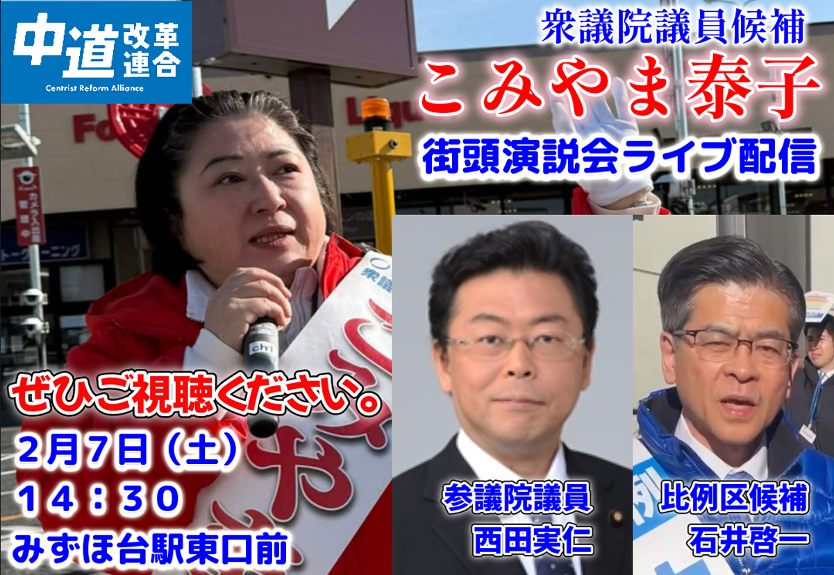 【14:25頃】こみやま泰子 街頭演説ライブ配信のご案内