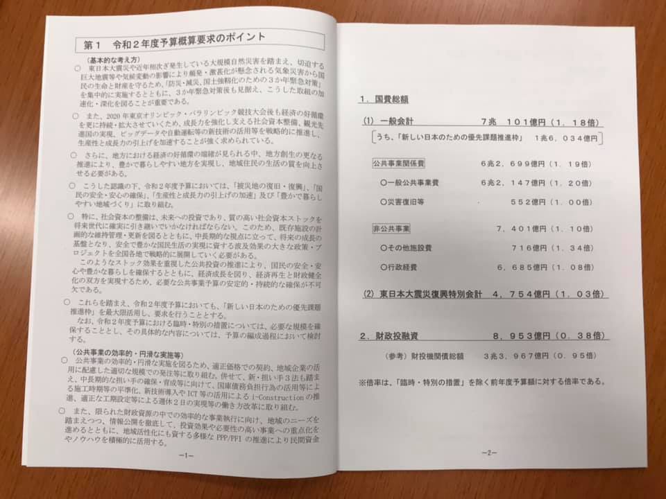 11日、国土交通省の令和2年度予算概算要求の概要について、大臣官房会計課から説明を受けました。今後、道路局、鉄道局、下水道部はじめとして、各部局での概算要求内容について、更に確認していくこととなります。