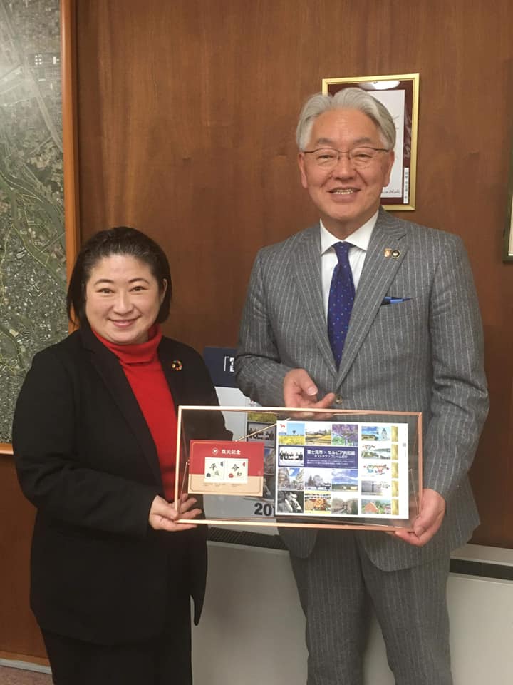 ふじみ野市、高畑市長との写真は、昨年のラグビーW杯感動の試合で使われた、小柴製作所のラグビーのホイッスル前で撮影。