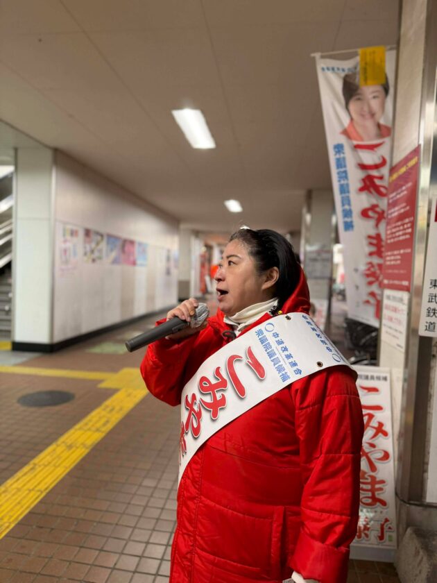 衆院選7日目。2月2日の朝は、東武東上線霞ヶ関駅前での駅頭活動から始めています。中道改革連合の掲げる政策の一端をまとめて記している政策パンフレットを手に、通勤・通学途上の皆様へのご挨拶・お声掛けに努めています。 霞ヶ関駅