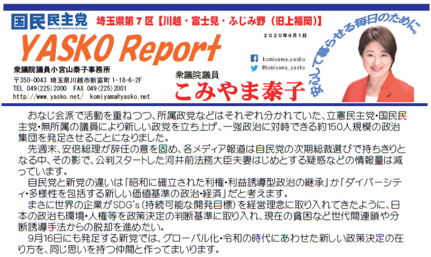 【泰子リポート 2020年9月1日】