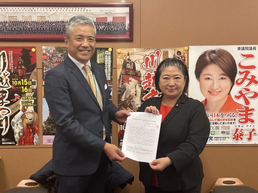 28日、建設技能者で構成される団体「建設埼玉」より宮前守中央執行委員長が国会事務所にお越し下さり、「建設国保の育成・強化を求める要請書」を頂きました。