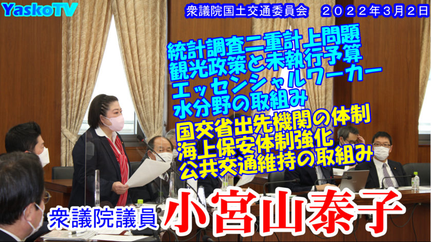 2日、衆議院国土交通委員会での大臣所信に対する質疑にて、国土交通大臣ならびに国土交通省官房長、海上保安庁長官、観光庁長官、自動車局長はじめとした政府参考人より答弁を求めました。 国土交通委員会にて 斉藤国土交通大臣 質疑