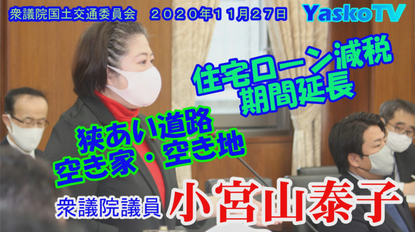 住宅ローン減税の期間延長について、並びに狭あい道路・空き家・空き地に関して取り上げた、衆議院国土交通委員会(2020年11月27日)の質疑抜粋加工動画をYouTubeにUpしました。