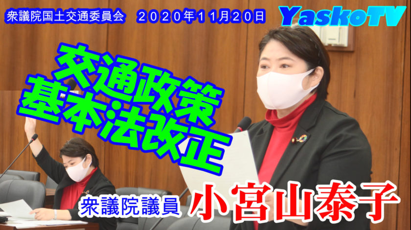 交通政策基本法改正について議題となった衆議院国土交通委員会(2020年11月20日)。衆議院議員小宮山泰子が起草案発議者として答弁に立った部分の抜粋加工動画をYouTubeにUpしました。