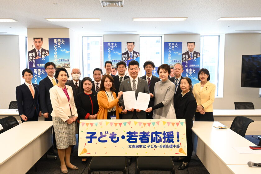 1月23日、立憲民主党子ども・若者応援本部にて、「こどもまんなか政策を実現をする会」より「抜本的なこども税制拡充に関する要望書」を受け取りました。 子どもが幸せに生まれ育ち、少子化が改善される日本の実現のために、 (1)