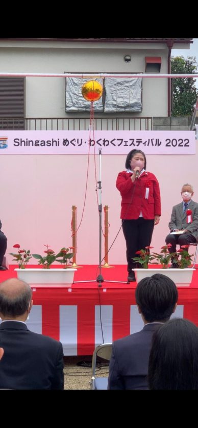 29日、新河岸川船着場(新河岸川旭橋に設けられた特設会場)での「Shingashiめぐり・わくわくフェスティバル2022」開会式に伺い、お祝いのご挨拶申し上げました。 実行委員会・関係自治会等、開催にご尽力された皆さまに