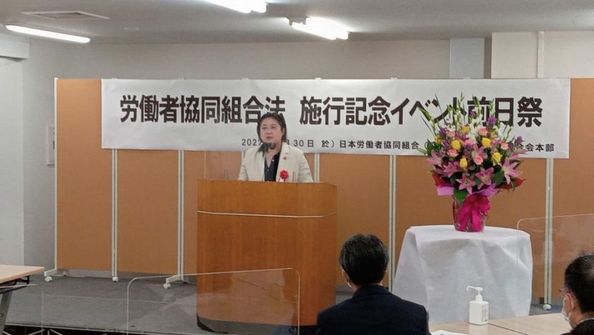 30日、「労働者協同組合法 施行記念イベント(前日祭)」が、日本労働者協同組合(ワーカーズコープ)連合会で開催され、新しい働き方である労協法の制度が、市民活動・社会の可能性を拡げると期待を込めて祝辞を述べさせて頂きました