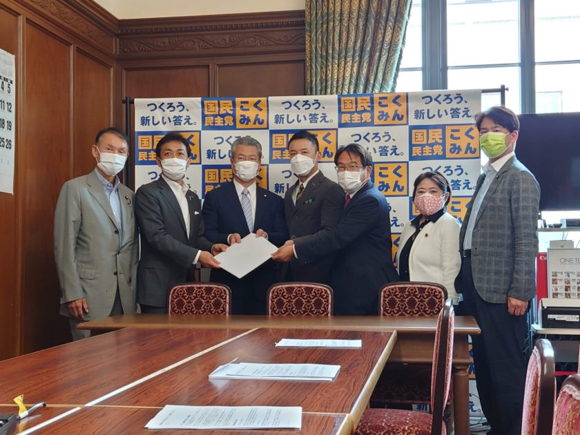 8日、「消費税減税研究会」でのとりまとめ文章を、国民民主党玉木代表ならびに社民党福島代表にお届けし、意見交換しました。 社民党福島参議員に