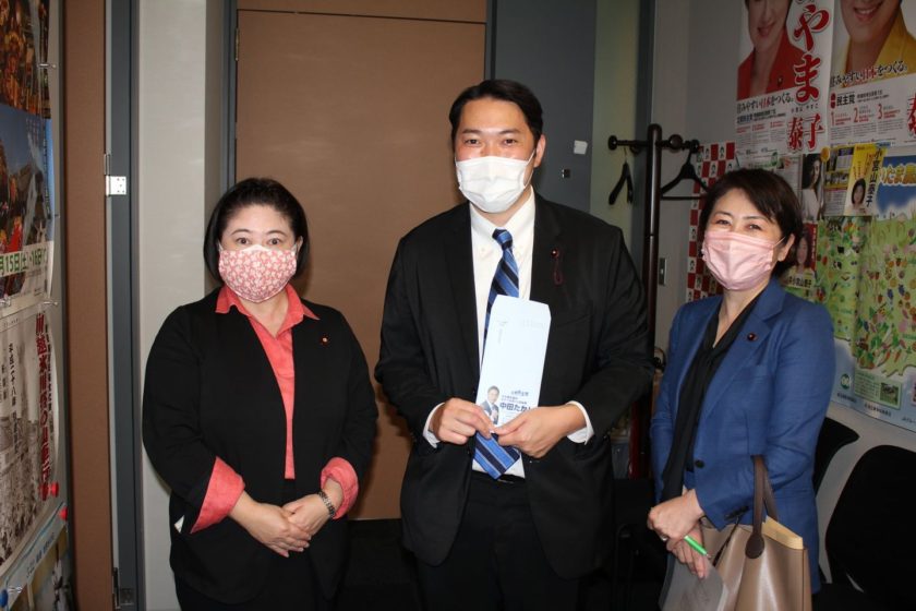 26日、渋谷区議会議員おだひろみさんと、中田たかしさんが、国会事務所にいらっしゃいました。 長妻昭代議士のもと、秘書を経験されたのち、区議会議員となられた中田たかしさんは、都議会議員選挙の立憲民主党公認予定候補。 中田さ