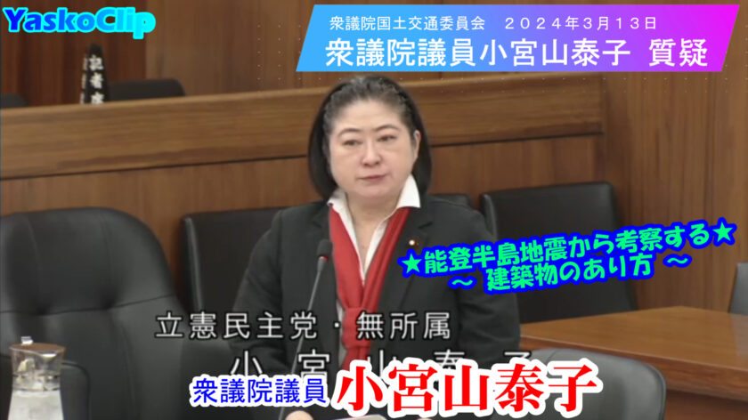 2024年3月13日の衆議院国土交通委員会にて、能登半島地震による建物被害の特徴ならびに、同震災から考察する建築基準法見直しの必要性について取り上げた質疑の抜粋映像をYouTubeにUpしました。 https://you
