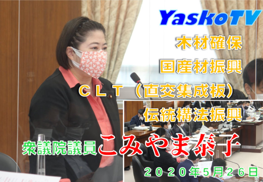 北米や中国での旺盛な建設需要もあり、輸入材の高騰が起きています。材木の確保が難しい、いわゆるウッドショック下の木材安定供給について答弁求め、また、国産材振興、CLT(直交修正版)利活用、伝統的構法振興など取り上げた、20