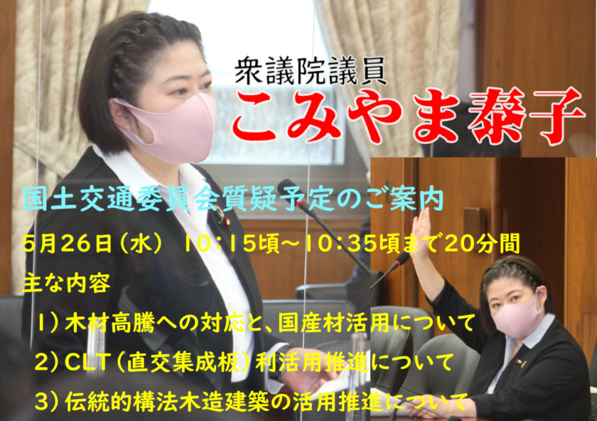 【26日】衆議院国土交通委員会質問予定のご案内